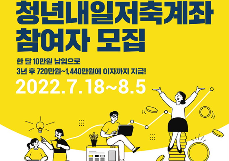 월 10만원 저축하면 3년 뒤 최대 1440만원, 청년내일저축계좌 7월 18일부터 5부제 신청!
