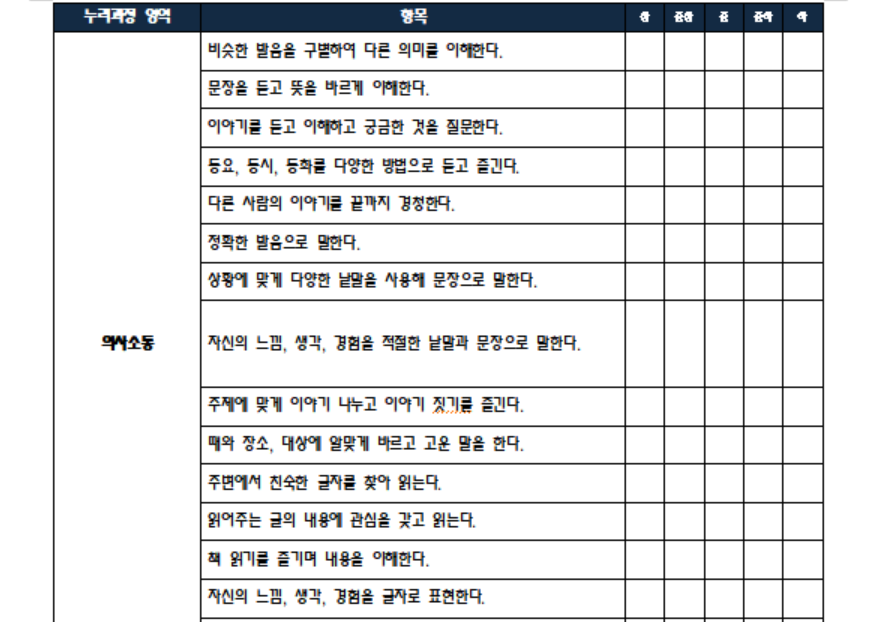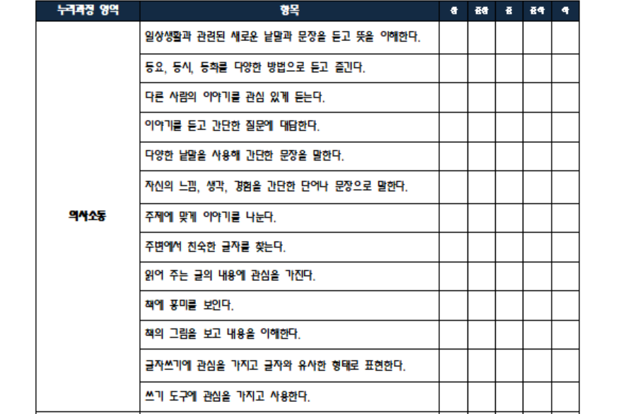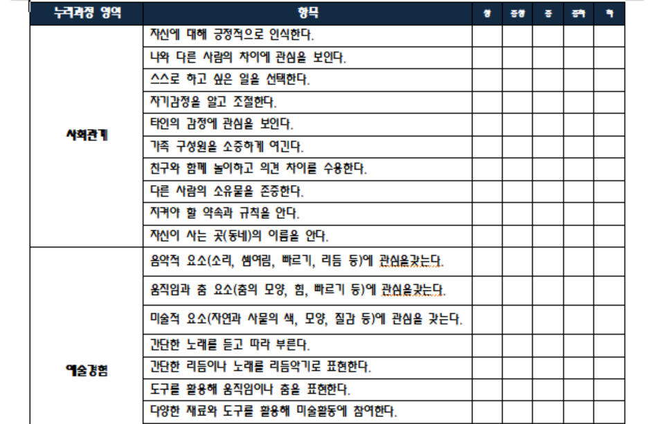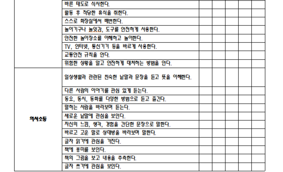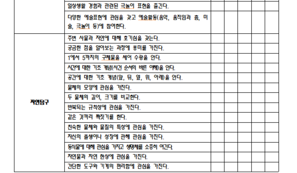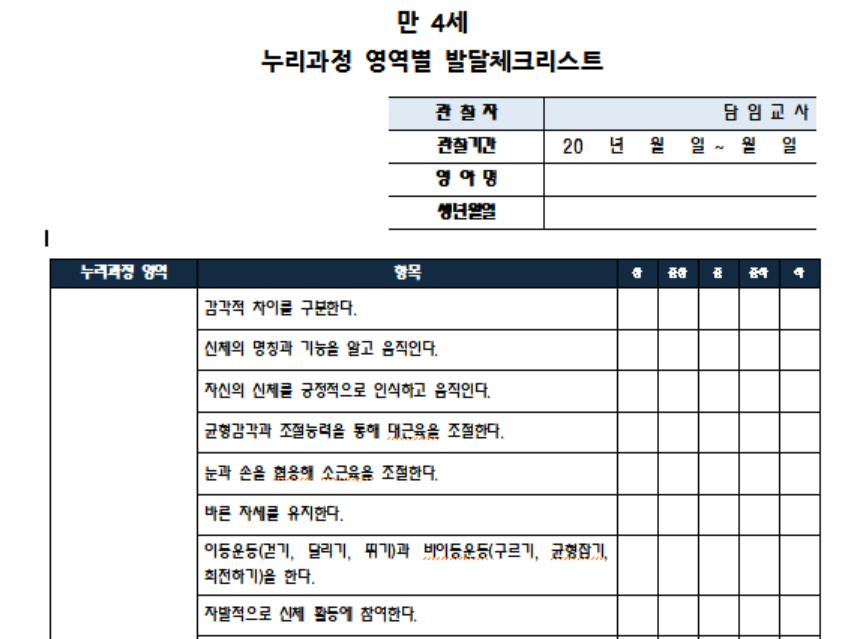 이번에는 유아 영역별 발달체크리스트를 올려보겠습니다.