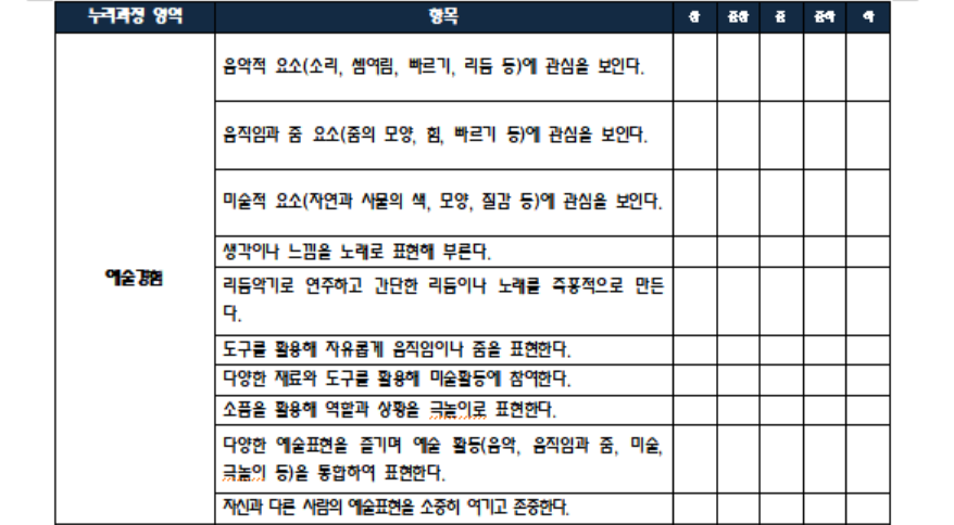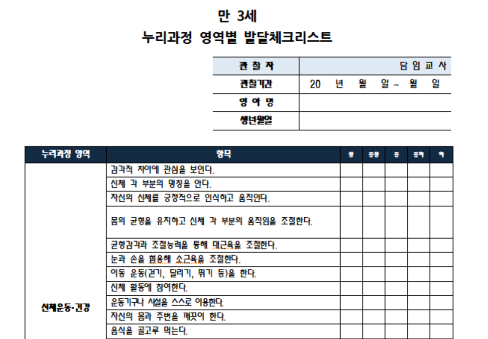 이번에는 유아 영역별 발달체크리스트를 올려보겠습니다.