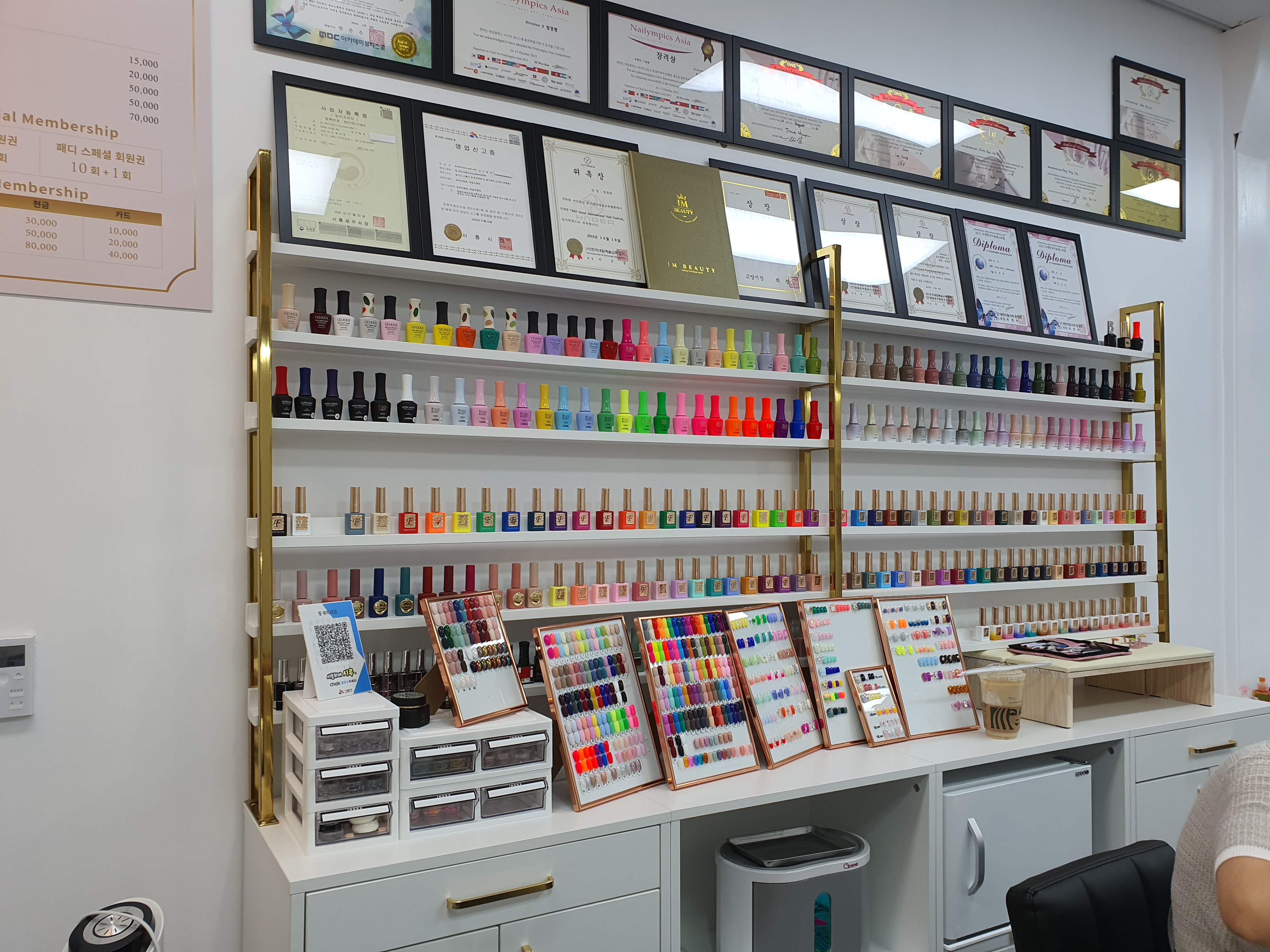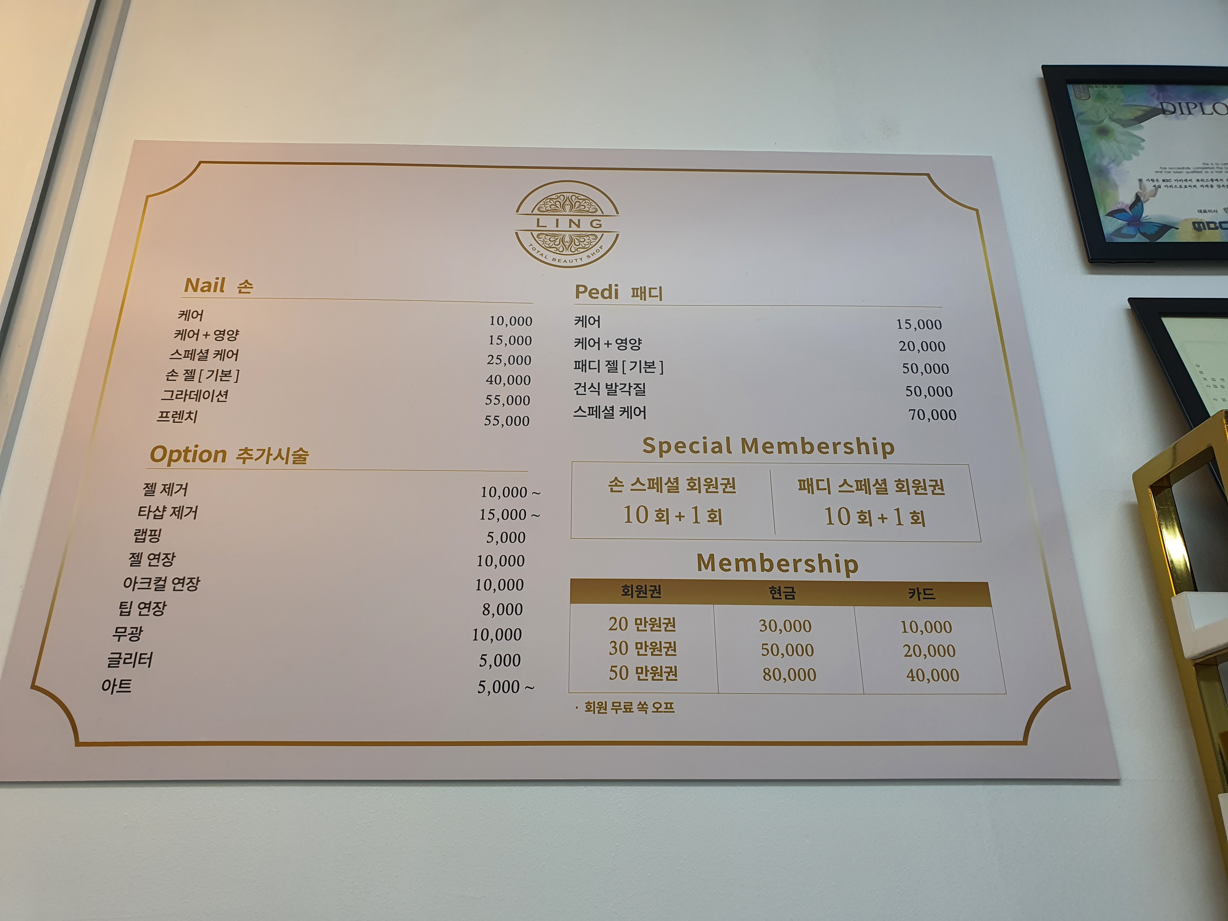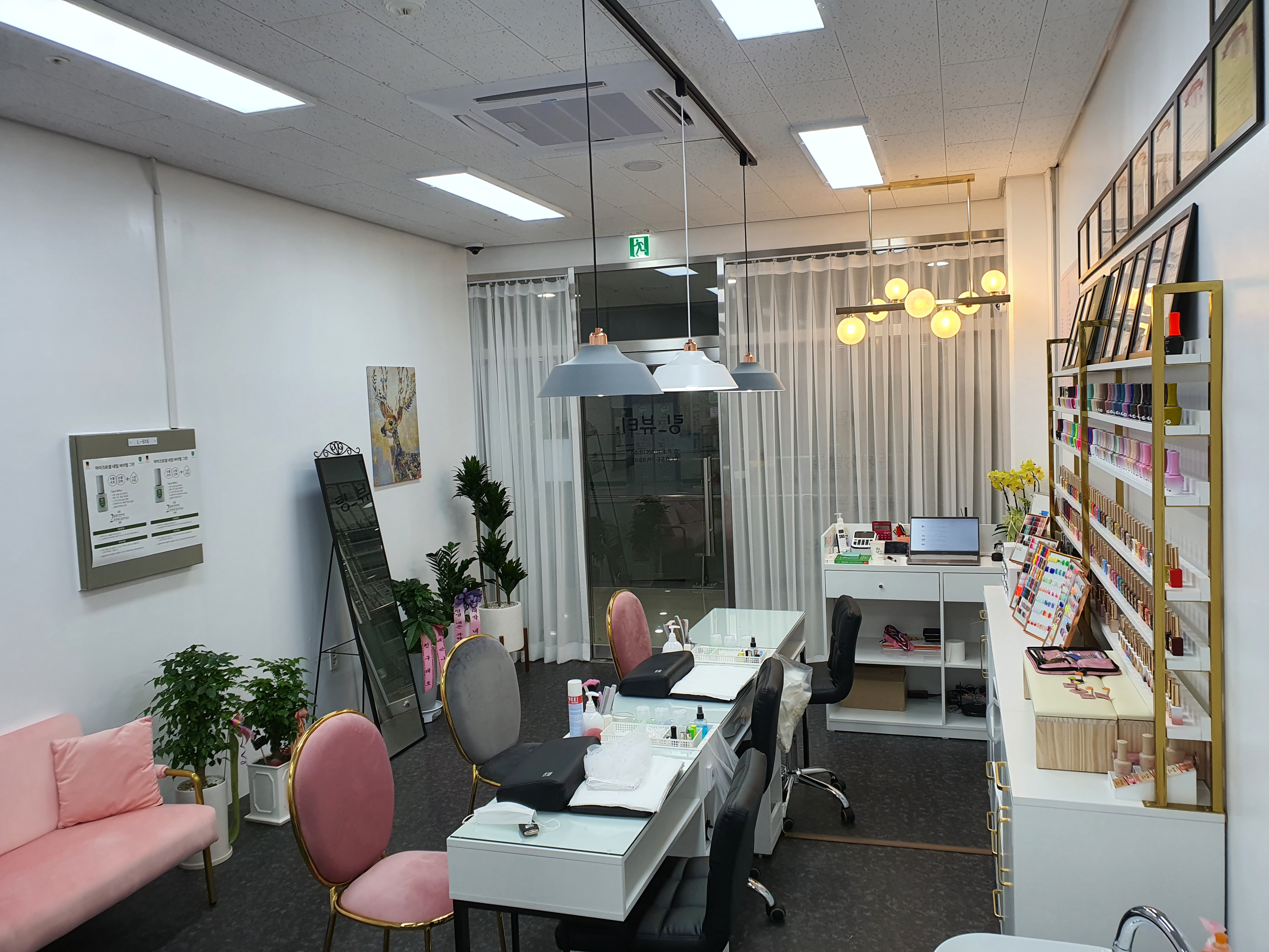발톱 케어받는 곳 정면은 이렇게 예쁜 액자와 여러가지 홍보물이 있습니다.