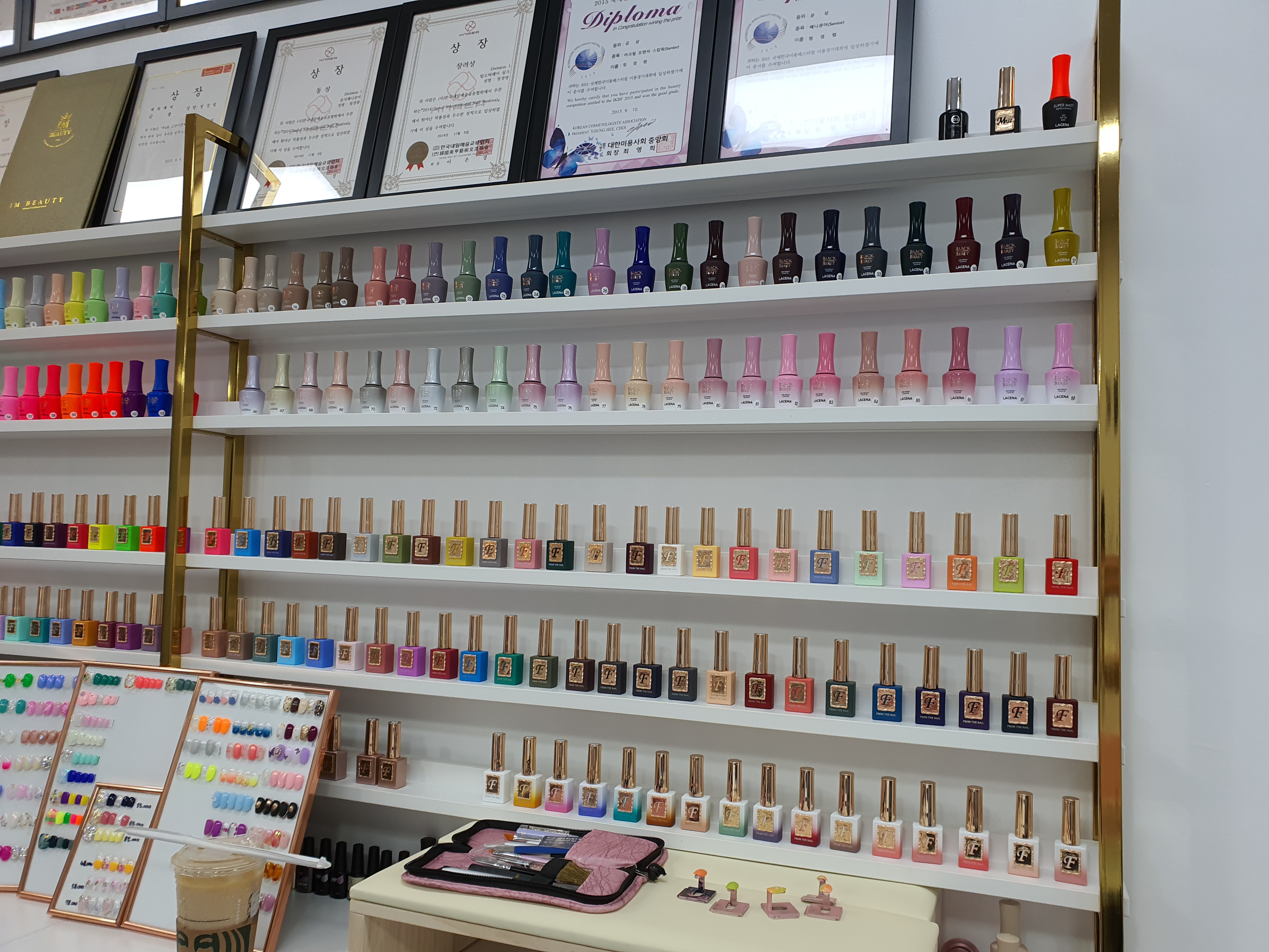 발톱 케어받는 곳 정면은 이렇게 예쁜 액자와 여러가지 홍보물이 있습니다.