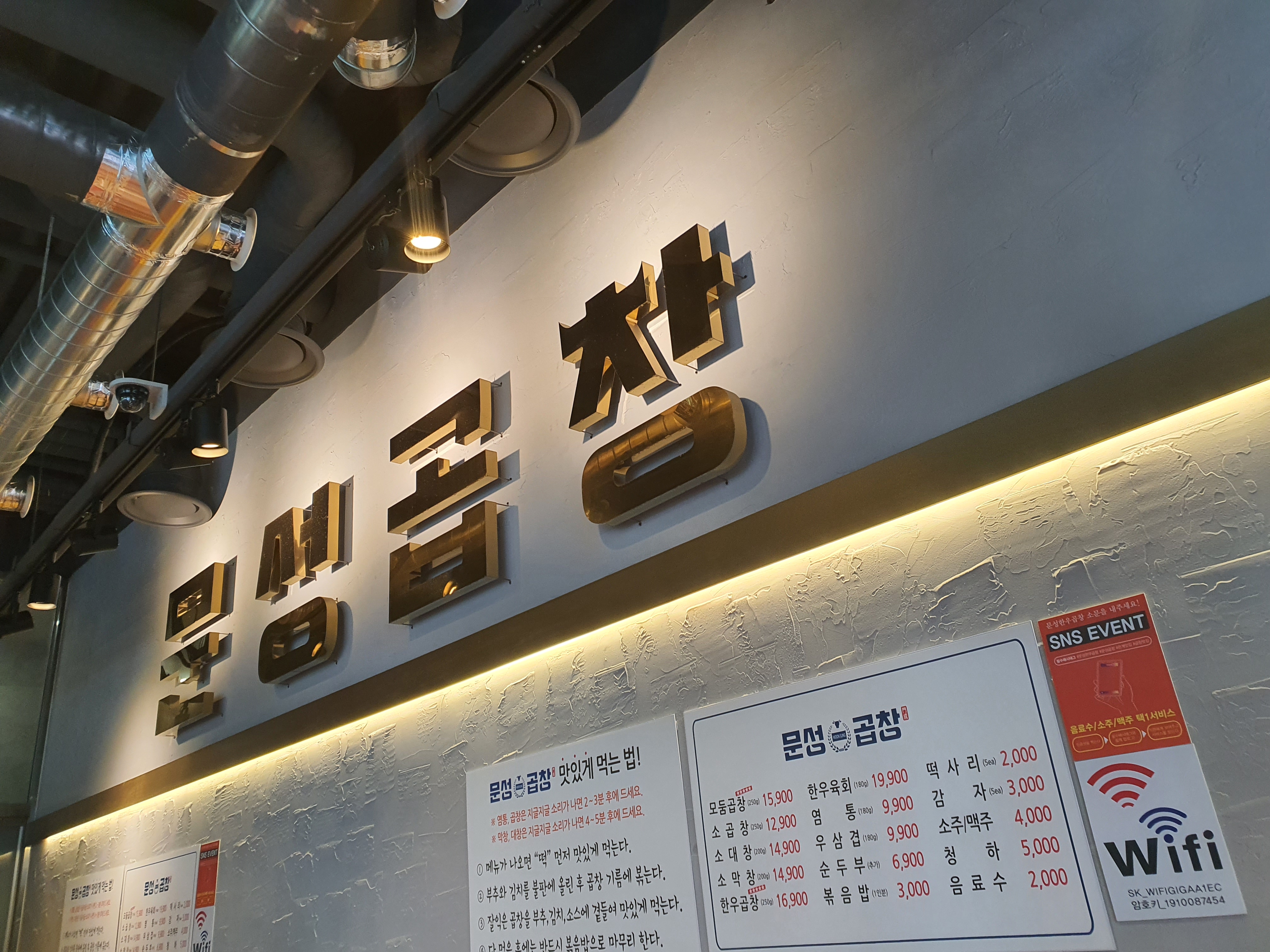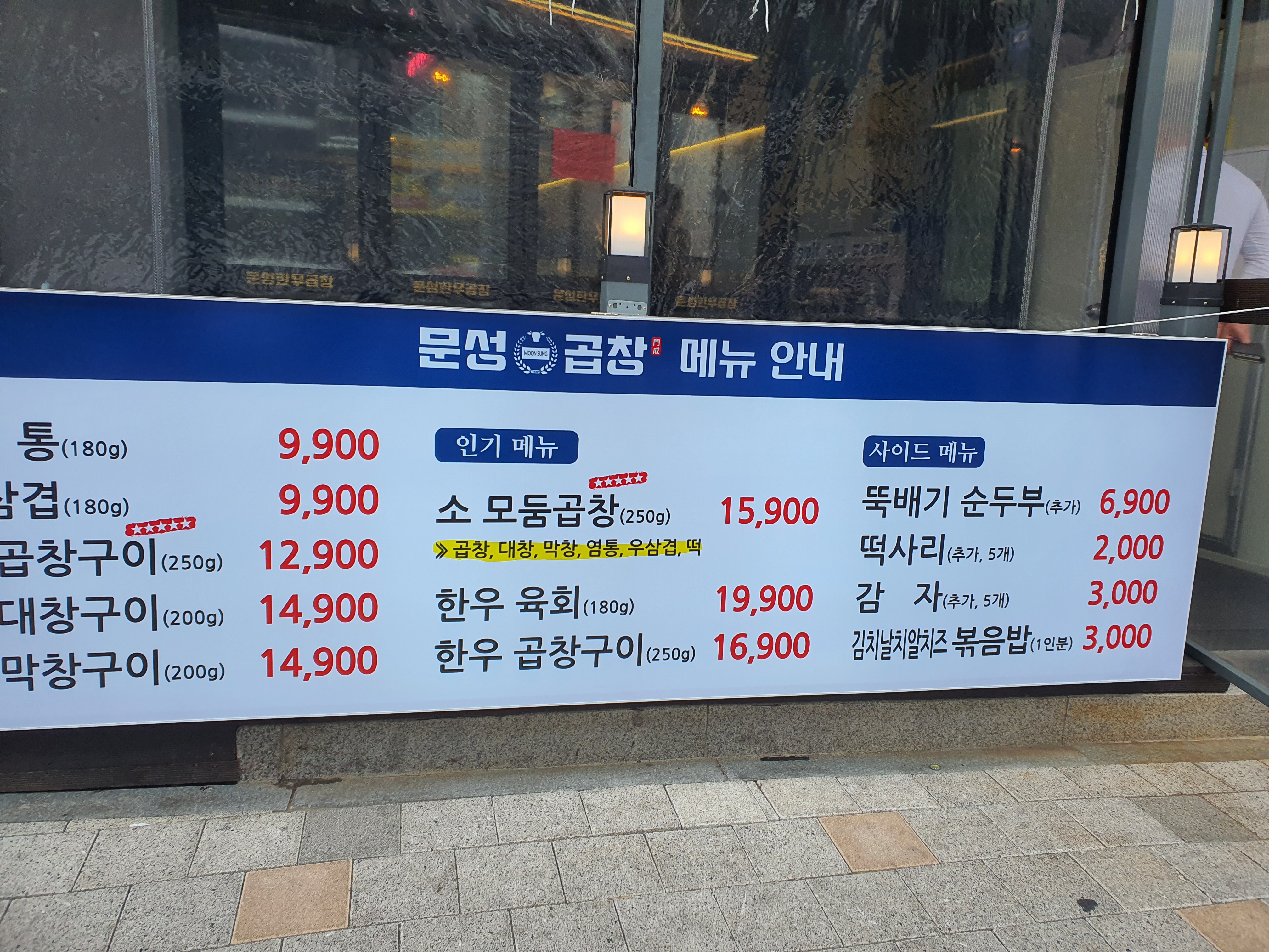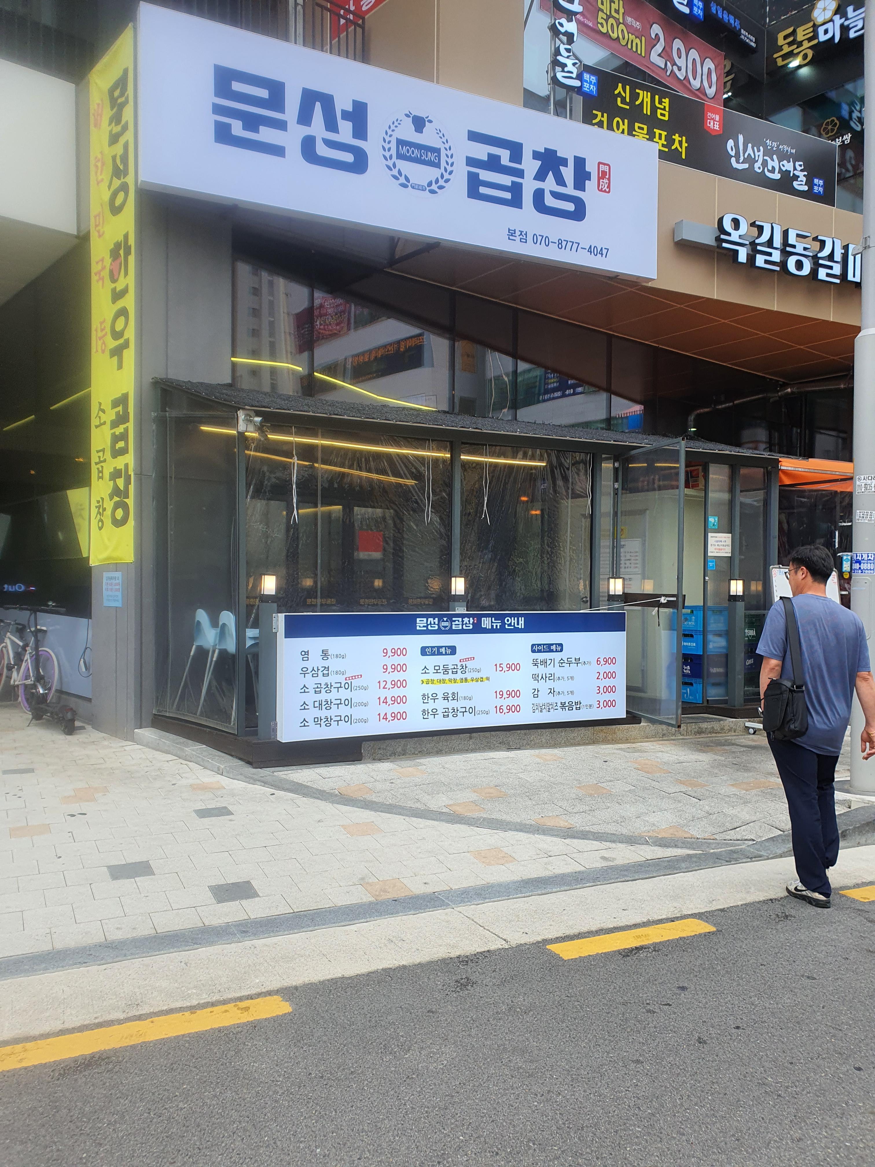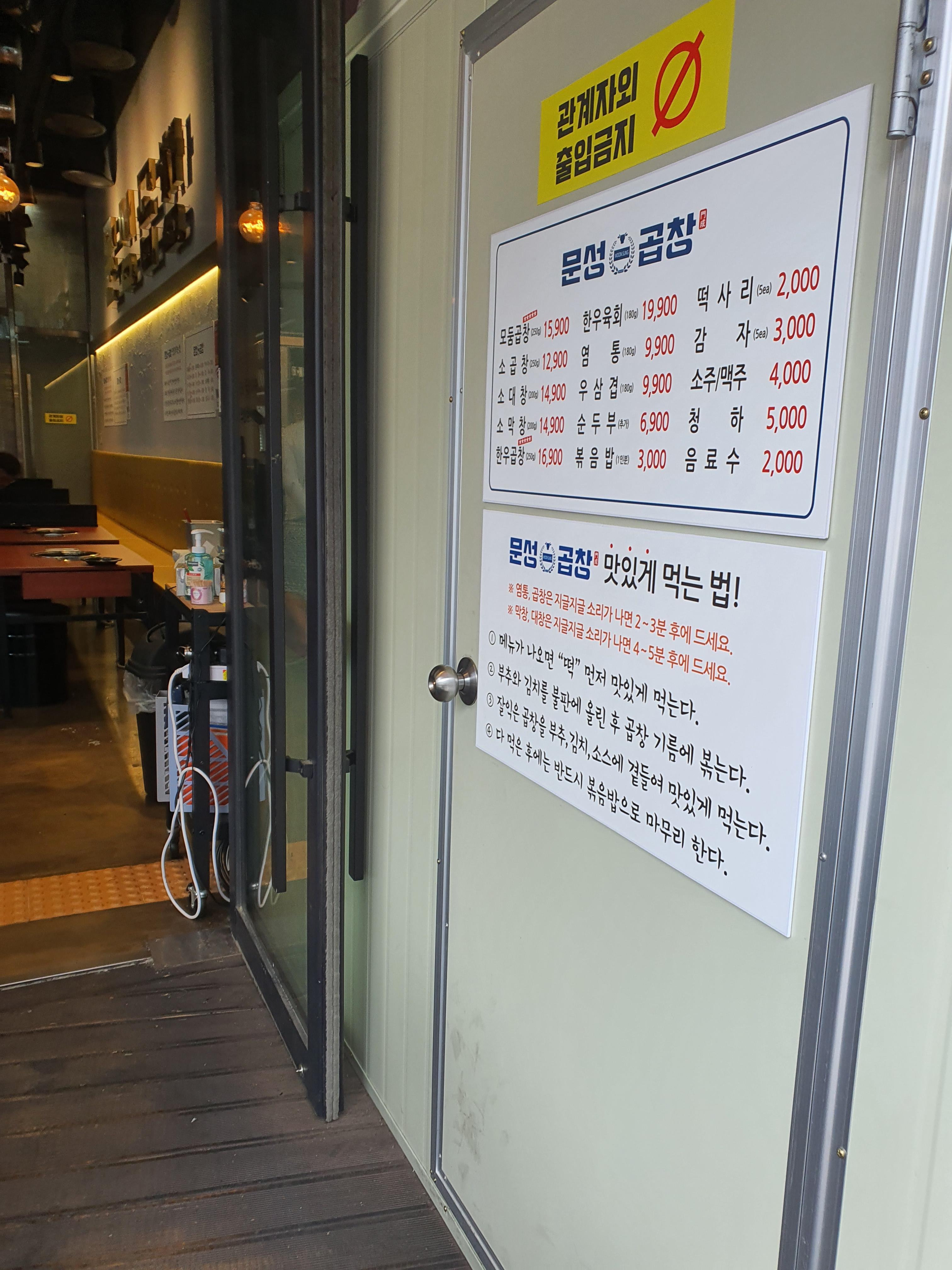 일단 들어오시면 이렇게 하얀바탕에 파랑글씨로 문성곱창이라고 적혀있습니다.