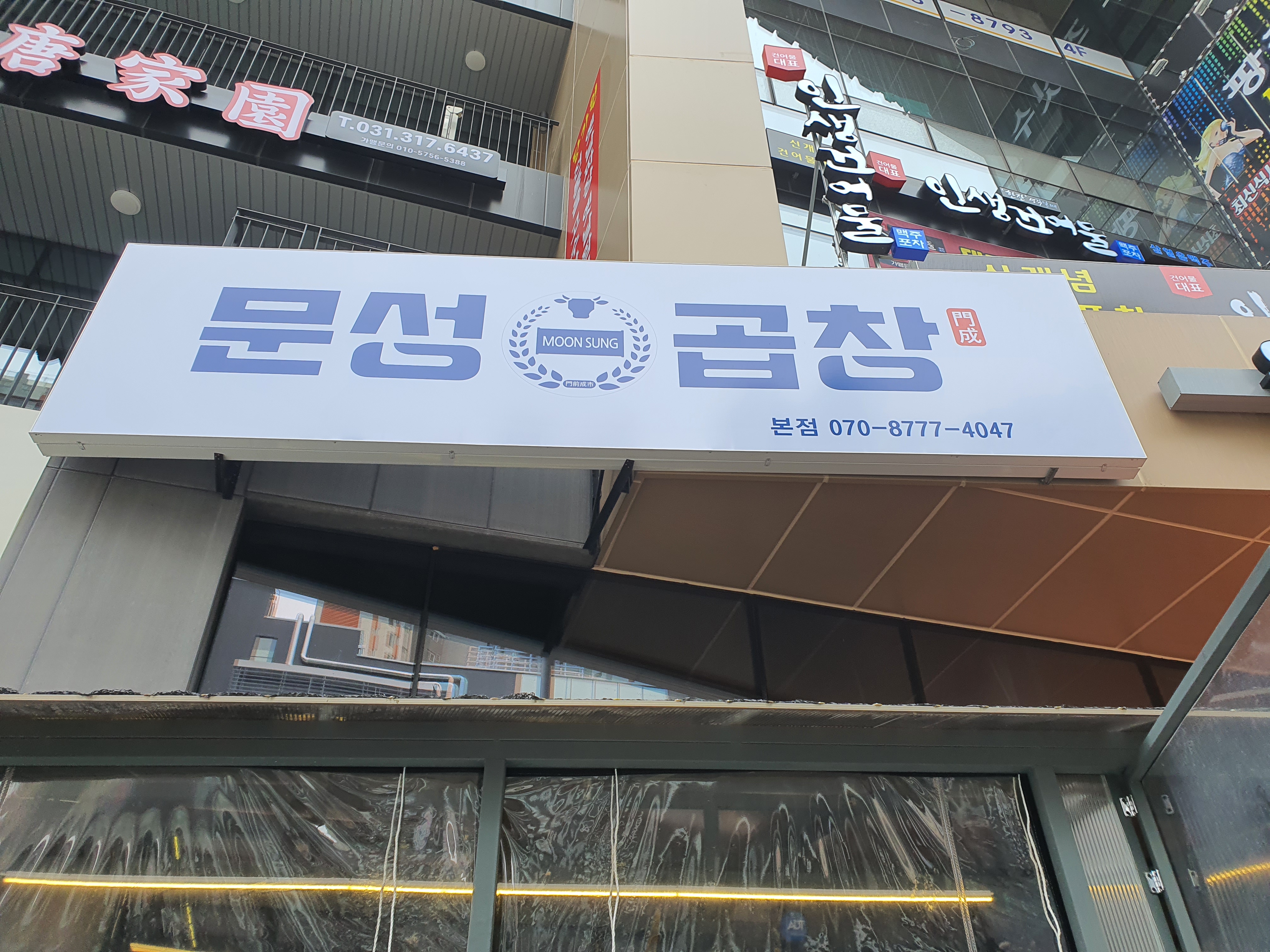일단 들어오시면 이렇게 하얀바탕에 파랑글씨로 문성곱창이라고 적혀있습니다.