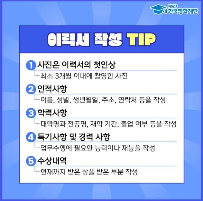 5. 수상내역에는 미미한 수상경력도 이력서 작성에 기입해 주면 좋습니다.