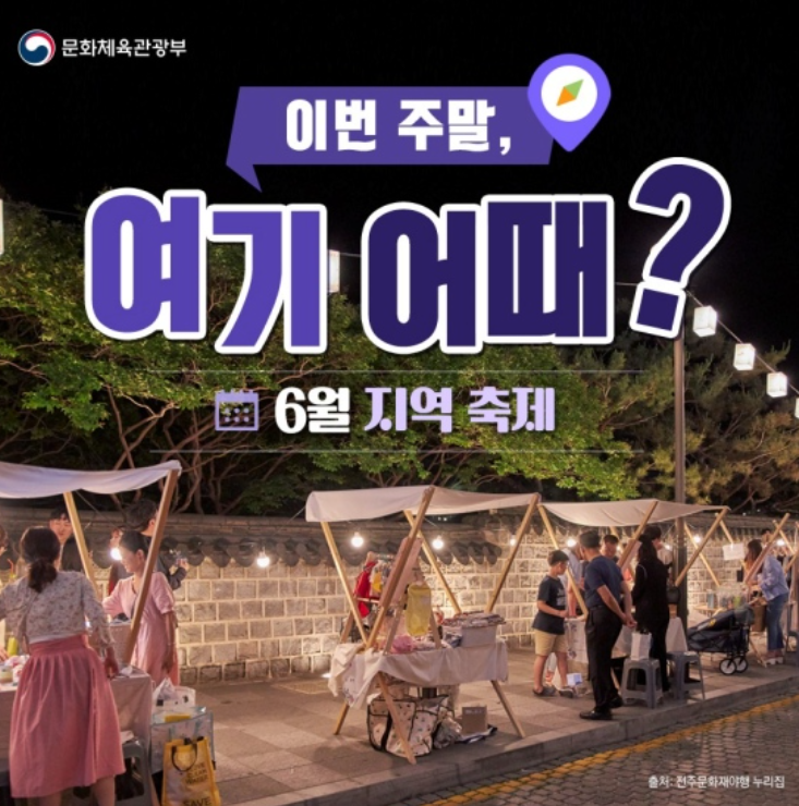 프르름이 가득한 남이섬 음악축제, 초여름 전주 야경을 즐기는 밤나들이, 지역 특산품의 매력이 가득한 지역행사, 수국 만발 제주 휴애리 사진 맛집까지! 6월 딱 가기 좋은 지역의 행사들을 알아보겠습니다.