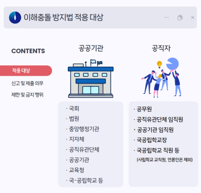 오늘은 이해충돌방지법 적용 대상과 신고 및 제출 의무에 대해 알아보겠습니다.