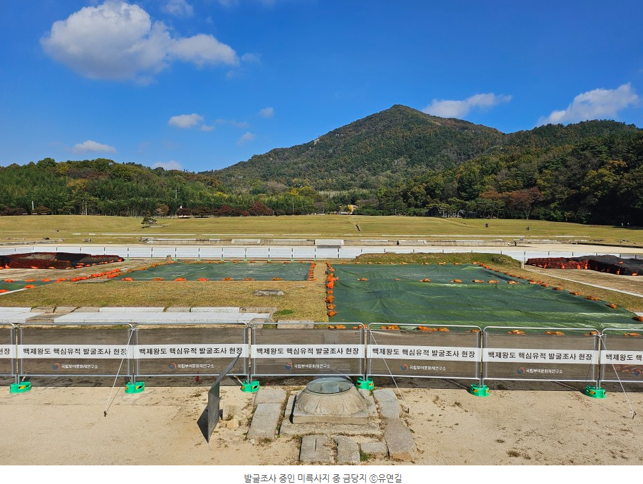 현재는 국립부여문화재연구소의 19차 미륵사지 발굴조사로 목탑 뒤 중앙 금당지 발굴조사가 현재 진행 중이라고 합니다. 미륵사의 역사와 문화 나이가 백제 시대 역사를 증명하는 귀중한 유물과 자료 등이 발굴될 것으로 짐작되고 있습니다.