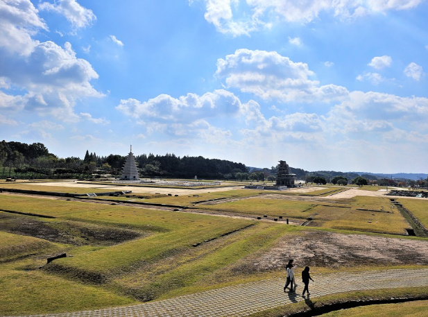 미륵사지에 들어서는 순간 미륵사지 규모에 깜짝 놀랄 수 있습니다. 미륵사지는 무려 1338만 4699㎡(약 413만여 평)으로 경주 황룡사지보다 2배 넓고, 경복궁보다 약 31배가 넓어 그 규모에 누구나 깜짝 놀랄 것입니다.