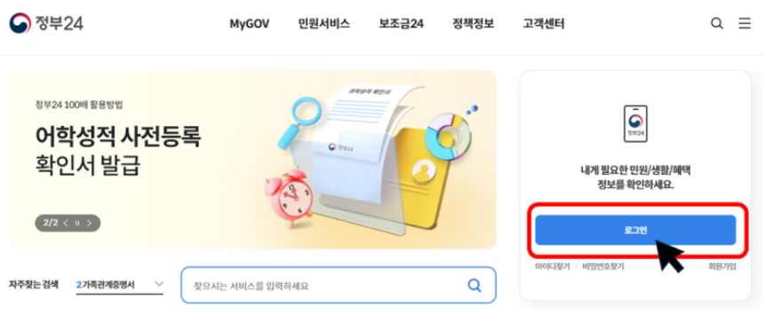 1. 정부24 인증서 로그인