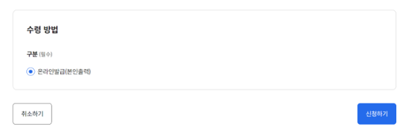 ⑤ 신청하기 버튼을 클릭하시면 발급 신청이 완료됩니다.