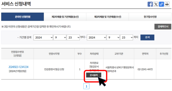 5. 증명서 발급 확인 및 출력