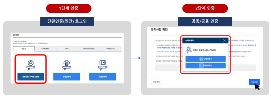 | 간편(민간)인증 | 공동/금융 인증 |