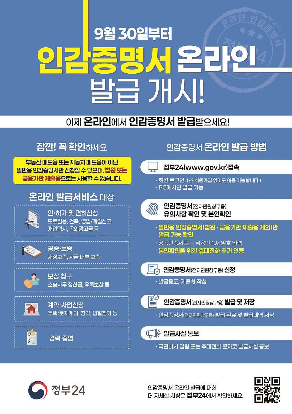 정부24에서 발급되는 온라인 인감증명서 서비스 대상
