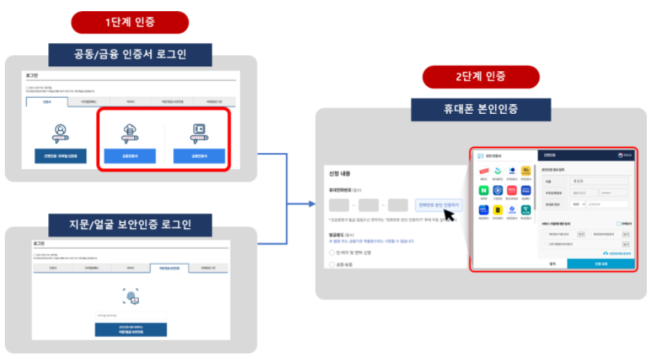 | 공동/금융 인증서 | 휴대폰 본인인증 |