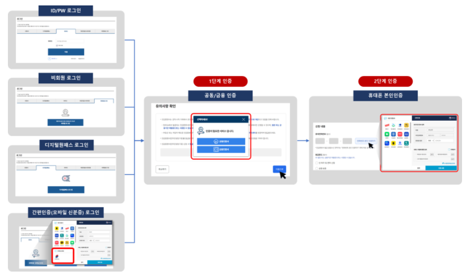 <ID/PW, 비회원, 디지털원패스, 간편인증(모바일신분증)>