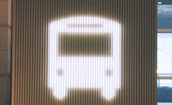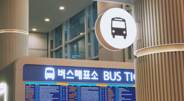 먼저, '버스 모양의 사이니지'가 있는 '버스 매표소'로 갑니다.