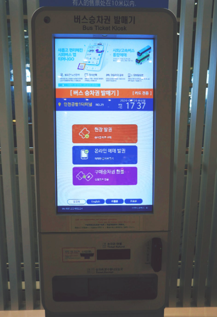 제1여객터미널(T1) 기준으로 리무진 버스(공항버스) 현장 예매 방법을 알아보겠습니다.