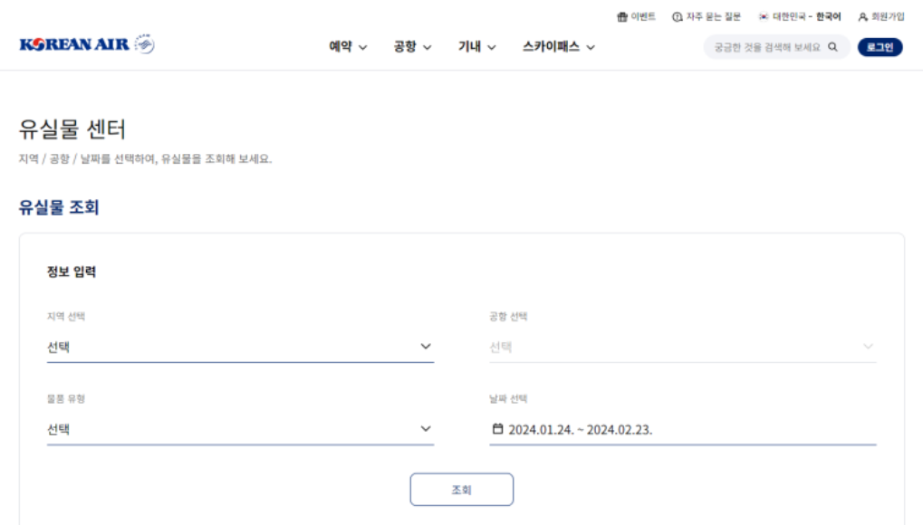 대한항공 유실물센터 icnbaginfo@koreanair.com 대한항공 유실물 조회하기