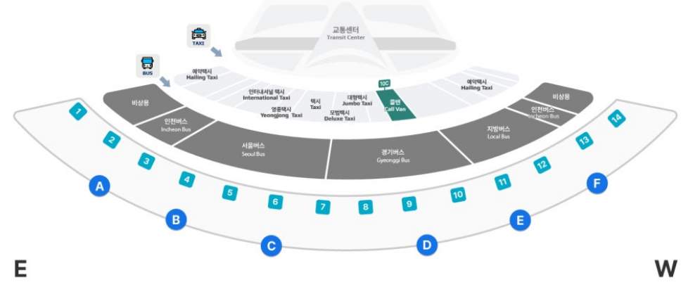 도착지역에 따라 승차장 위치가 다르니, 아래 이미지를 확인하시면 됩니다.