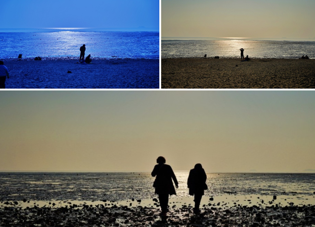 바다 위에 눈부신 윤슬을 뿌리고 석양에 차츰 노일이 지려고 준비 중이었습니다. 사실 이곳에서 담는 일몰 사진도 좋은데 장화리 일몽 조망지로 이동해서 낙조를 보았습니다. 카페라 필름 기능인 화이트밸런스를 이용해서 나름대로 황혼 무렵인 낙조 풍경을 만들어봅니다.