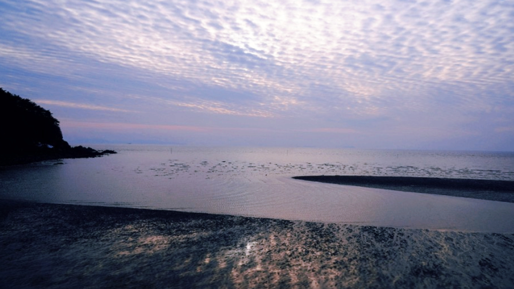 바다 주름 파도가 그린 아름다운 예술 작품인 갯벌이 썰물 때에 드러나며 골이 패인 모습이 드넓게 펼쳐집니다.