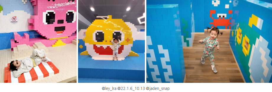 핑크퐁, 아기상어와 콜로보를 한 테마로 네모 블럭으로 꾸며진 곳도 있습니다. 블럭으로 된 미로가 있어서 숨바꼭질하듯이 놀기에 좋은 장소라고 합니다.