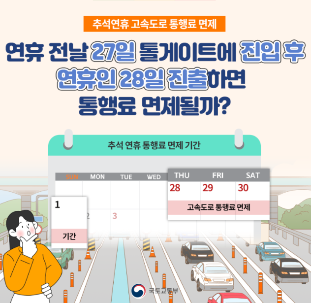 ※ 추석연휴 고속도로 통행료 면제 기간 : 9월 28일(목)~10월 1일(일)