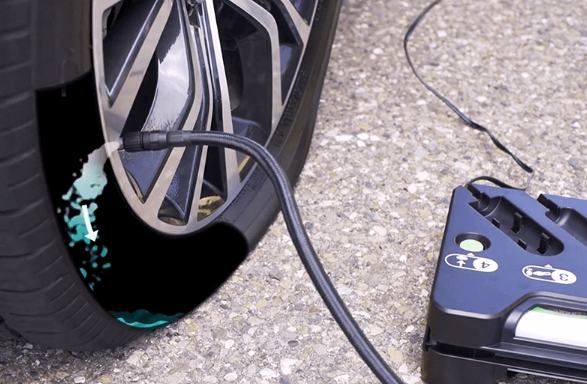 공기압이 낮아졌다면 정비소에 방문하여 타이어 공기압 보충을 요청하면 됩니다. 하지만 당장 정비소를 방문하기 힘든 상황이라면 트렁크에 있는 TMK(타이어응급처치키트)를 활용하여 공기압을 보충할 수 있습니다.