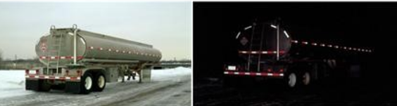반사띠는 자동차의 옆면 또는 뒷면에 부착되어 주위 자동차의 전조등에서 비춰지는 빛을 반사시켜 대형차 및 트레일러의 외형이 잘 보이도록 하는 등화장치입니다. 반사띠를 자동차의 외곽형상을 따라 모두 부착할 경우 "Full contour marking" 부분적으로 부착할 경우 "Partial contour marking"으로 구분할 수 있습니다.