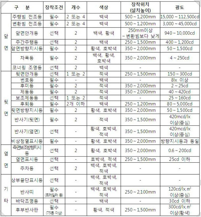 등화장치 장착기준(국내)