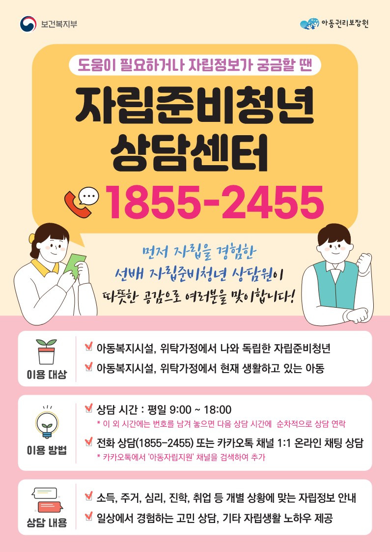 그럼 여기까지 자립준비청년 맞춤형 지원 대상 및 내용에 대해 소개해 드렸습니다.