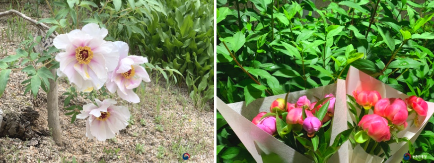 개발된 품종은 작약의 기능성 성분인 패오니플로닌이나 알비플로닌 등의 함량이 높은 것이 특징입니다. 약재와 화훼 두 가지 용도로 사용할 수 있어 국내에서도 많이 활용되고 있습니다.