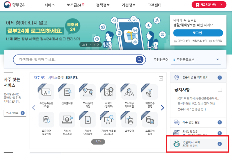 정부24 누리집 혹은 모바일 앱으로 국민비서 신청방법
