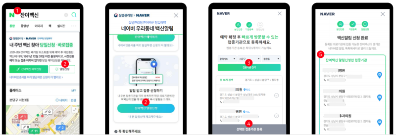 잔여백신 조회 및 당일예약 신청 간편한 네이버와 카카오 앱의 '국민비서'로