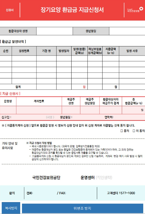 장기요양 환급금 지급신청 방법