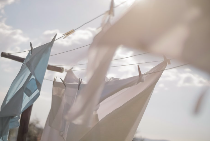 빨래들이 가까이 붙어있으면 통풍이 되지 않기 때문에 잘 마르지 않는다고 합니다. 습기는 꿉꿉한 냄새의 원인이라 이렇게 되면 빨래에서냄새가 나게 된다고 합니다. 이를 방지하기 위해서는 빨래를 널 때 간격을 두고 널어야 합니다. 하나 건너서 하나 널면 통풍이 잘 되기 때문에 빨래가 잘 말라서 냄새를 방지할 수 있다고 합니다.