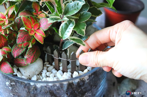 완성한 후, 그 모습 그대로 유지하는 것이 포인트이기 때문에 자라는 속도가 느리거나 외부 환경에 쉽게 변하지 않으면서도 생육 환경이 비슷한 식물끼리 심으면 관리가 한결 수월합니다.