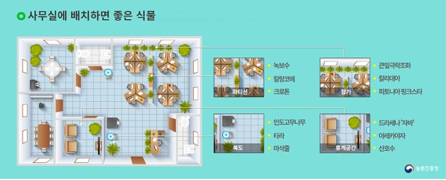 장소(위치)에 따라 배치하면 좋은 식물(가정vs사무실)