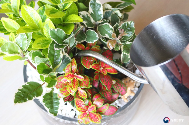 관리할 때 가장 주의해야 할 점은 바로 과습입니다. 한꺼번에 물을 많이 주거나 급하게 주면 배양토가 물을 흡수하기 전에 배수층에 물이 고여서 뿌리가 썩을 수 있다고 합니다.