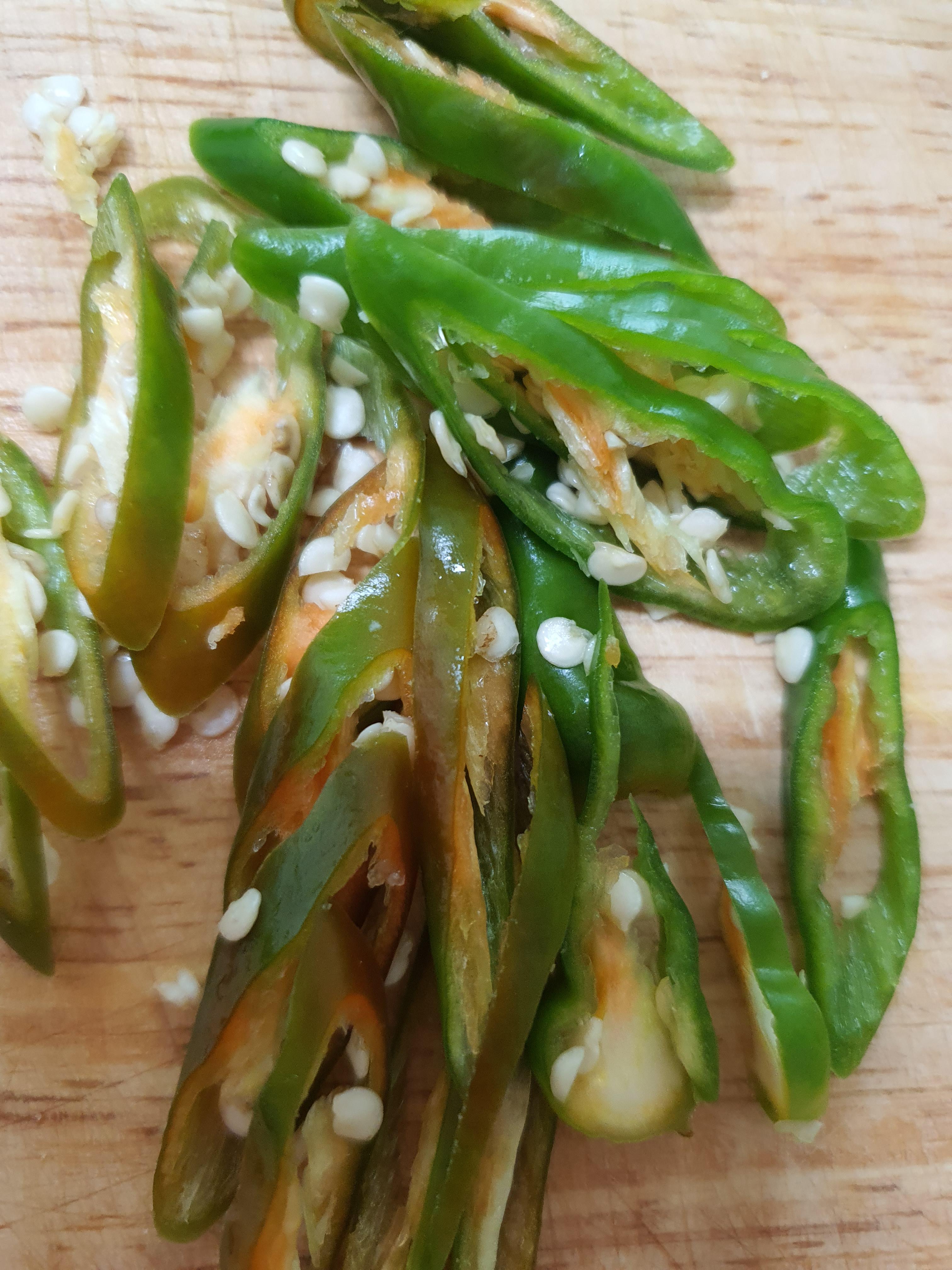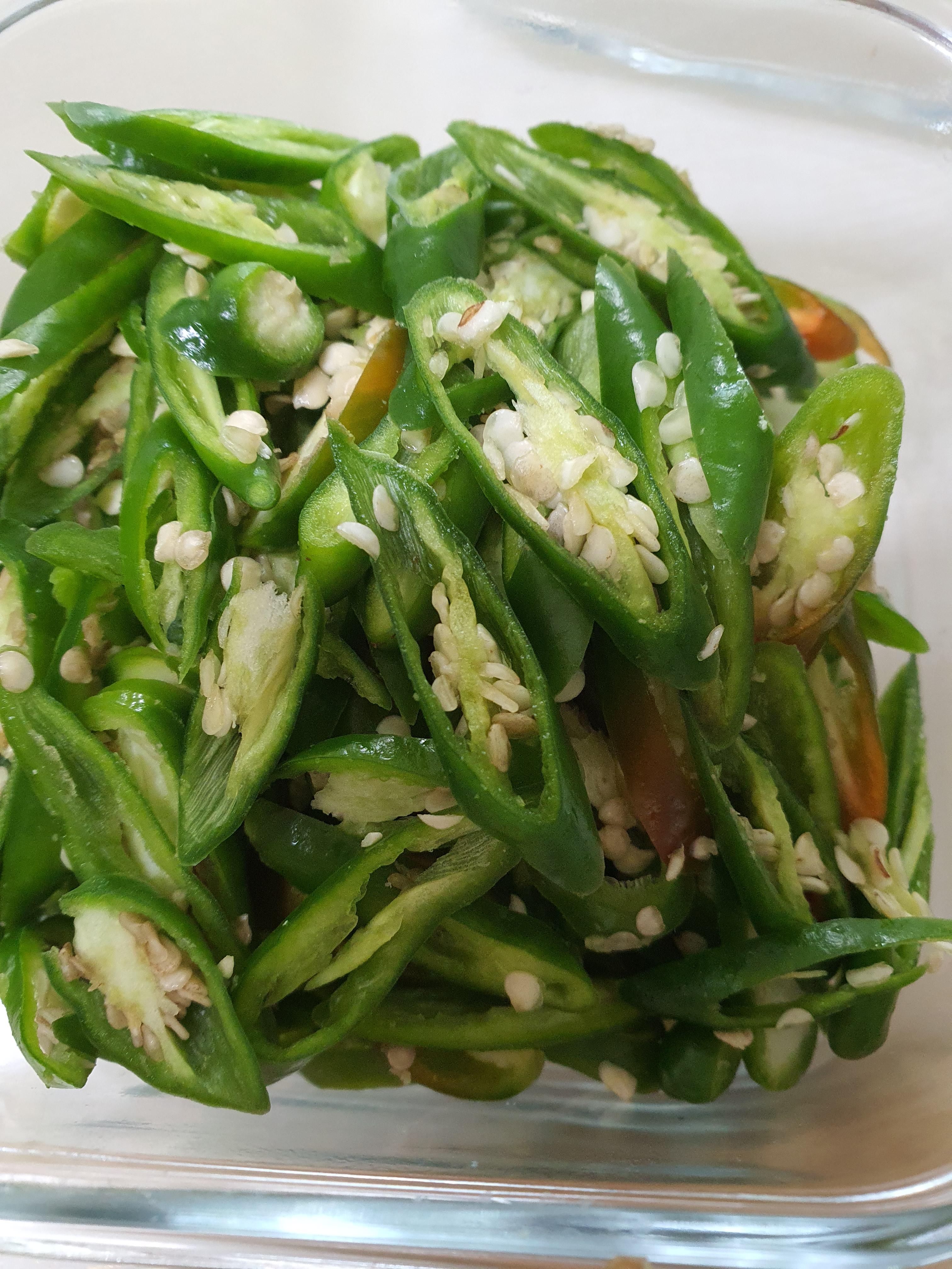 청량고추도 어슷 썰기로 최대한 얇게 썰어 주었습니다.