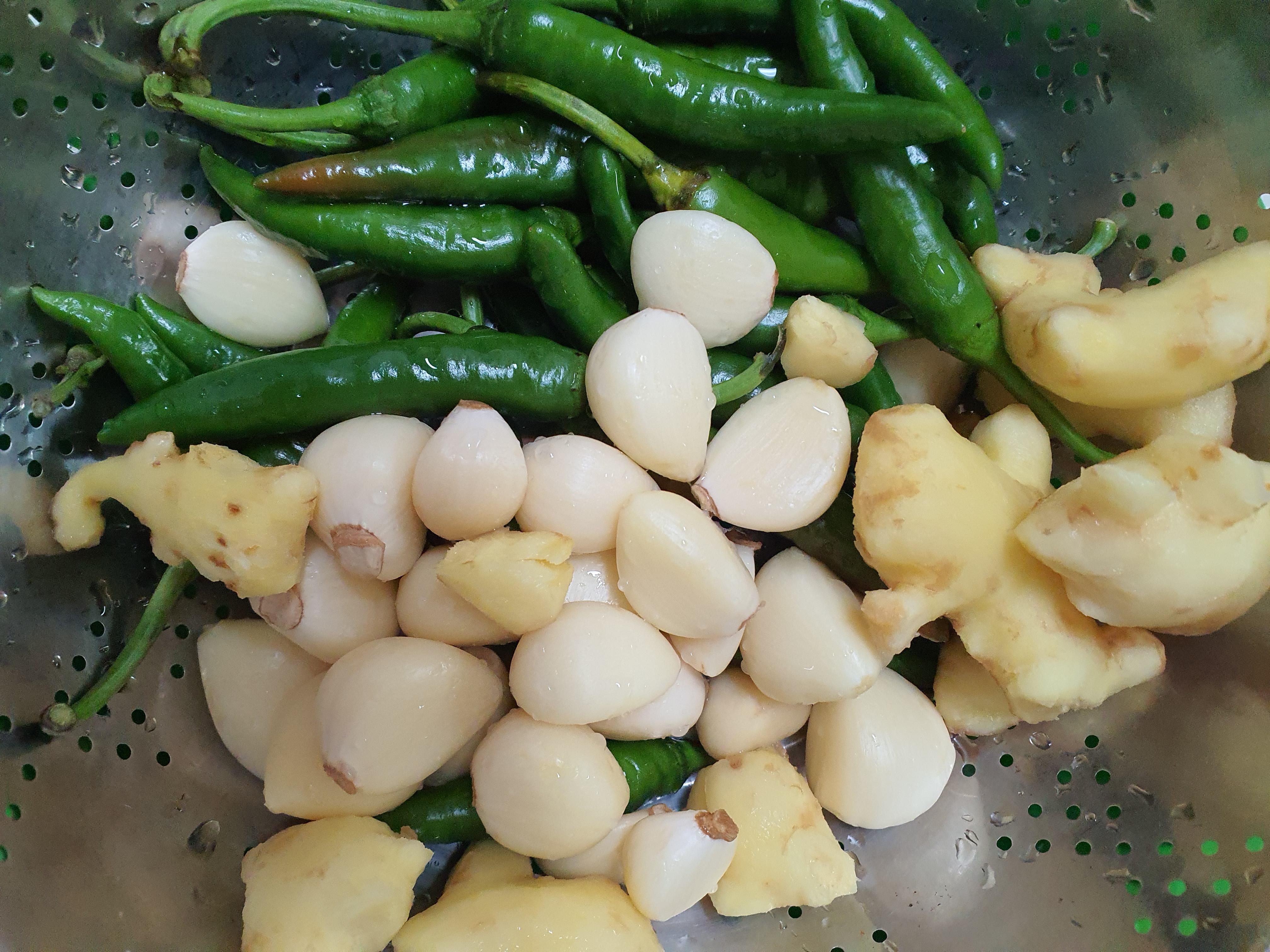고추랑 마늘, 두룹, 머구등을 장아찌해두었는데.. 거기다 오늘 깻잎순을 사서 6시간 정도 밑에 깔아두었는데 다들 맛있다며 함께 먹기 좋은 음식이였습니다.