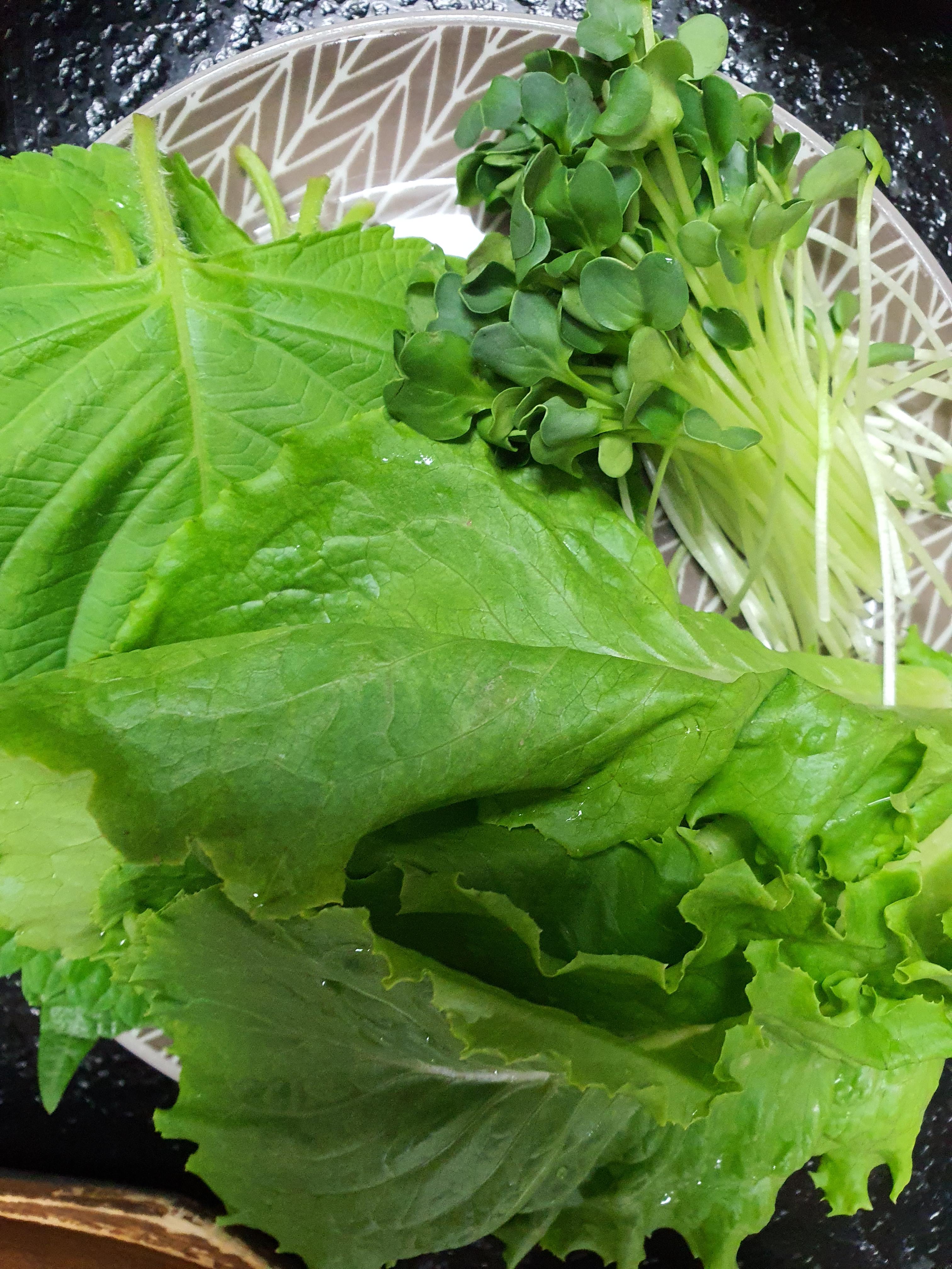뭐 상추도 깨끗이 씻어 물기를 빼주시면 되시구용