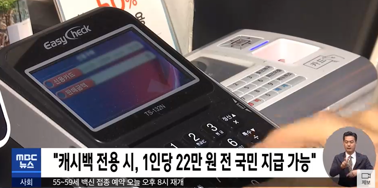 14일 백혜련 민주당 최고위원은 KBS 라디오 '최경여의 최강시사' 인터뷰에서 "신용카드 캐시백을 없애고 이걸 재난지원금 예산으로 조정하게 되면 어떤 추가 예산 없이도 1인당 22만원 수준으로 전국민에게 지급이 가능하다"고 밝히기도 했다고 합니다.