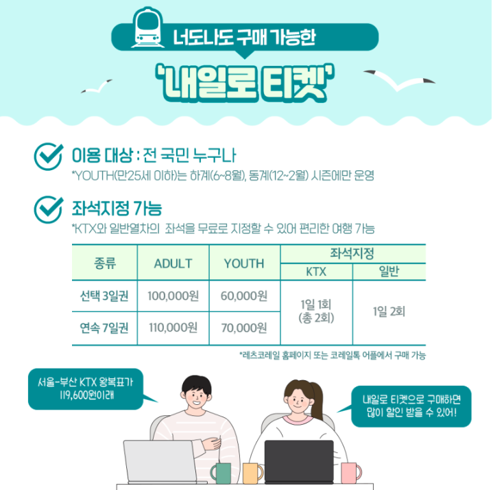 ※ 레츠코레일 홈페이지 또는 코레일톡 어플에서 구매 가능