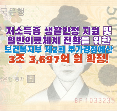 저소득층 생활안정 지원 및 일반의료체계 전환을 위한 보건복지부 제2회 추가경정예산 3조 3,697억 원 확정