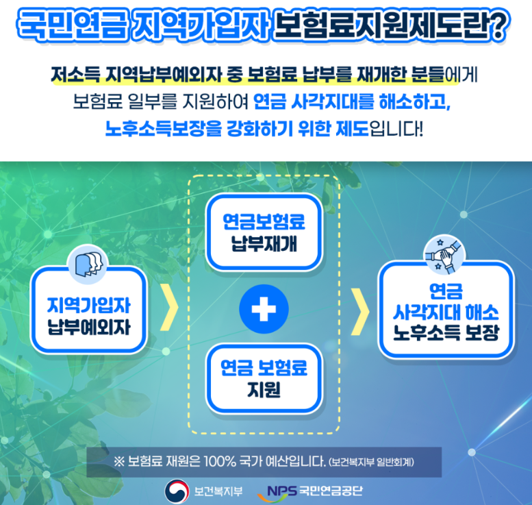 오늘은 2022년 7월 1일부터 시작되는 저소득 지역가입자 국민연금 보험료 지원제도에 대해 알아보겠습니다.