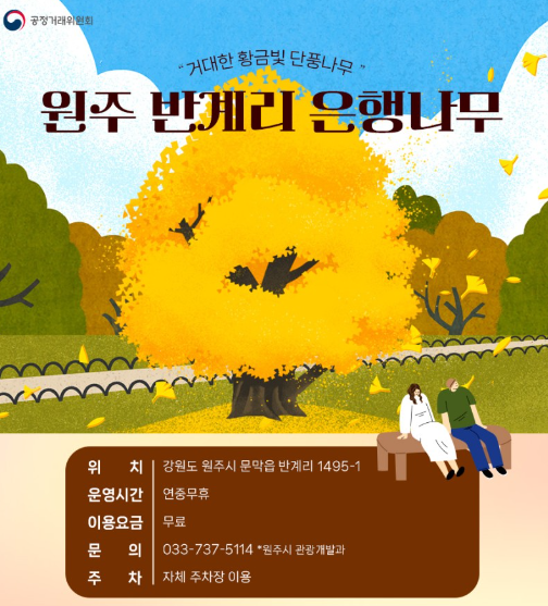 산진 찍기 좋은 가을 단풍 나들이 스팟, 원주 반게리 은행나무