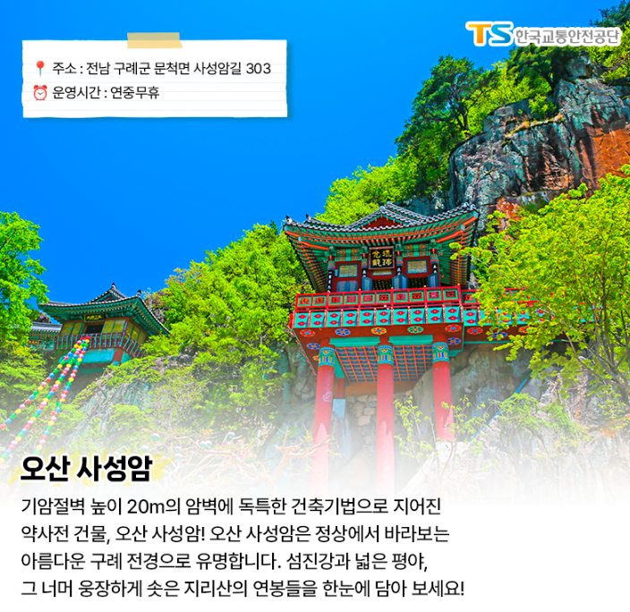 오산 사성암은 정상에서 바라보는 아름다운 구례 전경으로 유명합니다.