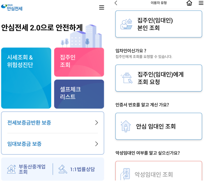 전세 계약 전 확인해야 할 필수사항인 '임대인 정보 확인' 계속되는 전세사기를 방지하기 위한 대국민 서비스 <안심전세app>으로 임대인 정보를 손쉽게 확인할 수 있습니다.