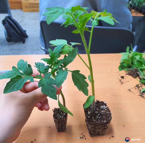 이러한 과정을 반복해 주면 불량한 환경에서도 병에 걸리지 않고 쑥쑥 잘 자라는 토마토가 만들어집니다. 처음 작업할 때는 어색할 수 있지만 반복해서 하다 보면 빠르고 정확하게 할 수 있습니다.